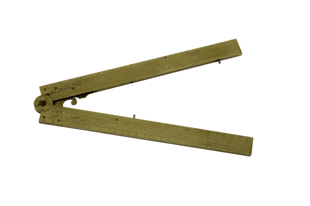 Instrument à fonctions multiples, le compas de proportion est décrit pour la première fois par Galilée au début du 17e siècle. Il était très utilisé par les géomètres, ingénieurs et artisans jusqu’au milieu du 19e siècle. Cet instrument permet de résoudre de manière géométrique de nombreux types de calculs différents : proportions, mesures d’angles, surfaces, volumes, masse volumique de métaux différents, etc.