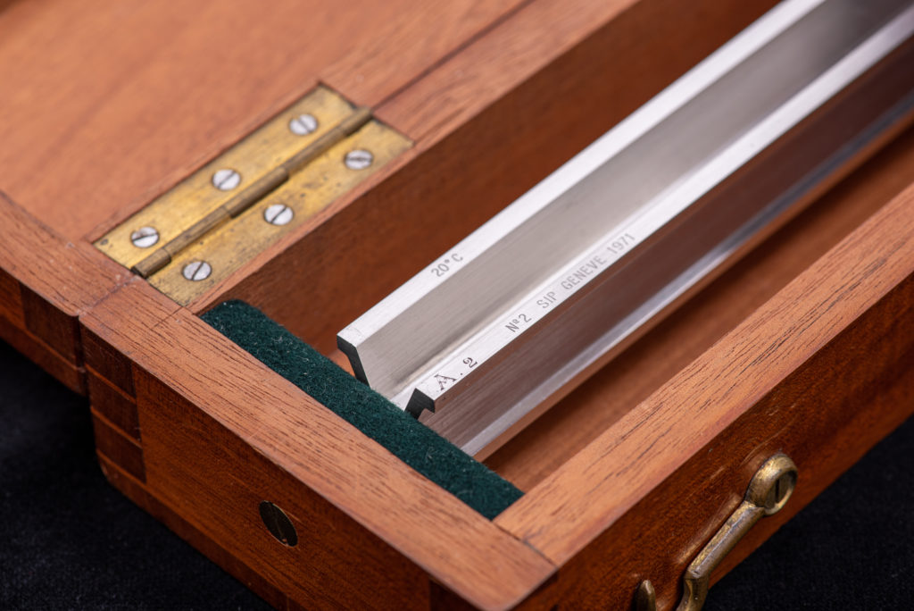 A côté de la production d’autres instruments de mesures comme les micromètres, les pieds à coulisse, la SIP assure encore une autre mission de prestige en 1937: la remise à neuf des étalons primaires de 1889 conservés au BIPM de Paris.